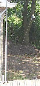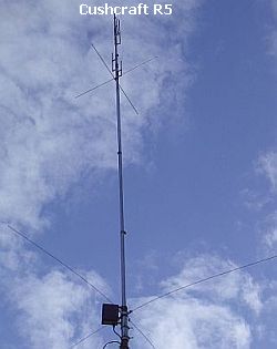 On top of the 12 m mast where this antenna is suspended, a 5 m long Cushcraft R5 (fig») vertical is mounted. On the 20 m band the antenna is a shortened antenna with a 20 m trap. It turns out that for DX and Europe traffic the 20 m full wave antenna is on average better or as good as the R5!