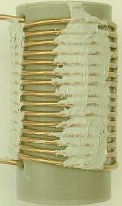 14.5 MHz trap with 27 pF cap: 1.8 mm diameter wire, 15 turns staggered windings on 3.2 cm diameter PVC tube.
