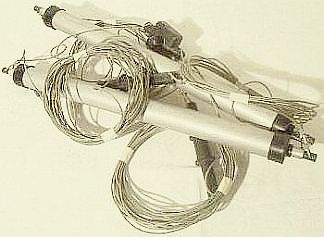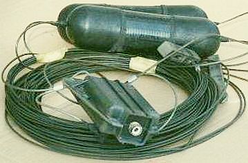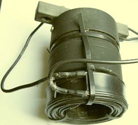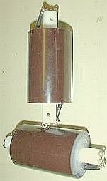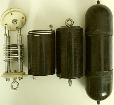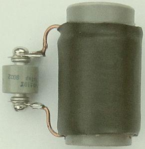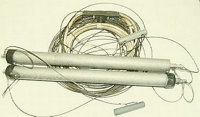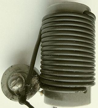 Ready-made traps are often offered in England, USA and Germany. Left: a German make, middle: type KW-40, Unidella in the USA, right: German traps made of 50 Ω RG58 coaxial cable. In the last construction, the coil is a moulded-in coax cable and the cable capacitance acts as a capacitor. Because the LC ratio is different than in the original W3DZZ design, the antenna will only resonate in the 40 and 80 m band and the dimensions of the dipole can deviate from the original W3DZZ.