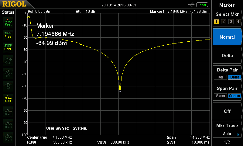 PAØFRI: The adjustment or checking resonance of a trap can be done in different ways: with a (grid)dipper, spectrum analyzer or signal generator. The disadvantage of a dipper is that the scale is generally not accurate, so the frequency has to be checked with a receiver. Not everyone does have an analyzer or signal generator. Fortunately, the transmitter can be used as signal generator as UR4LRG did.