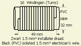 If 16 turns are wound tightly, it resonates in the 7 - 7.2 MHz range with a 100 pF capacitor. The 49 mm long coil is wound on a standard thick-walled PVC tube with a diameter of 32 mm. With my Russian 100 pF capacitor the resonance was circa 7.2 MHz..