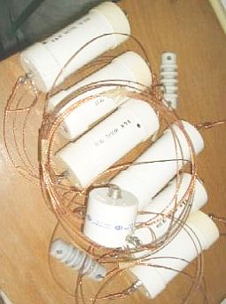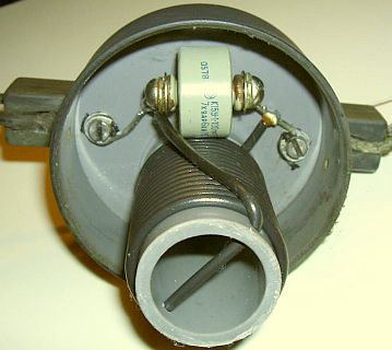 The enclosure is made of PVC pipe with two lids. The trap is glued at the upper lid with special HARD PVC GLUE and the wire ends are attached to a (Fritzel) insulator with two stainless steel bolts. The bolts are also connection points for the antenna.