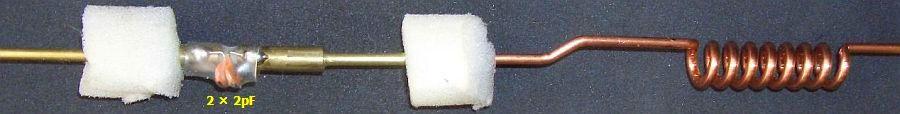 Someone sent me a image of his antenna, where instead of a 2.5 pF capacitor a 1.0 pF type was mounted. The antenna could be a clone, but if it is compared with my antenna, there is no difference seen from the insides are equal.