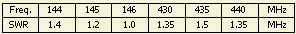 The test was repeated on a 1.70 m pole in the backyard. See the corresponding SWR («fig) in the table. Later the antenna was mounted (fig») on the chimney and the SWR stays identical.