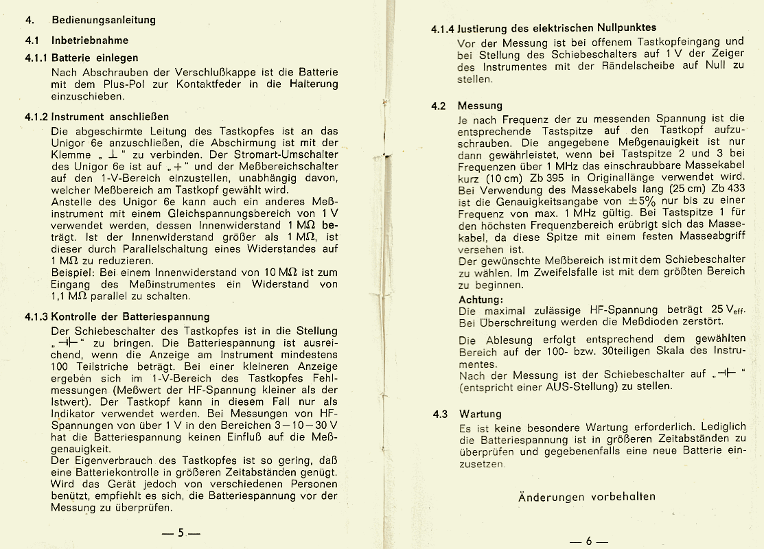 METRAWATT HF TASTKOPF TYPE GE 4085