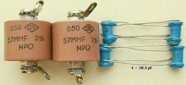 The capacitors used are 28.5 pF. Actually they are 27 pF types, but many in my stock were close to 28.5 pF. Four equal ones of 28.5 pF were selected.