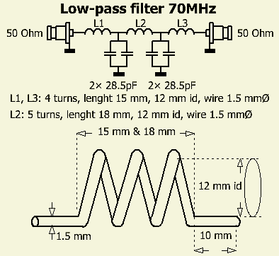 There are several LP filters for the 4 m band on the Internet. This article is about such a simple 5-pole low pass filter with a smaller diameter of the coils.