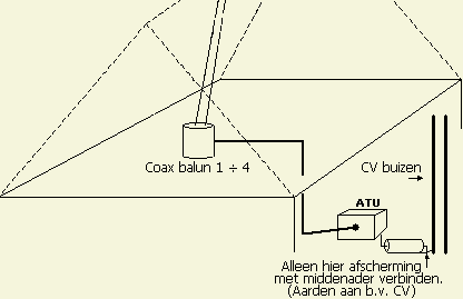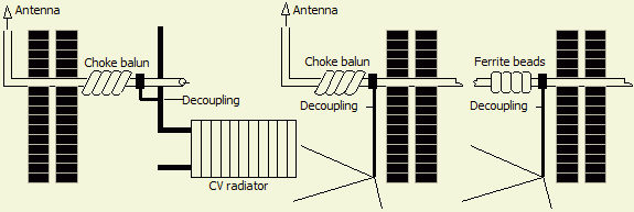 Nog beter is het als de ontkoppeling buiten het huis aangebracht wordt door de mantel van de coaxkabel te ontkoppelen met een dikke draad of staaf naar radialen op de grond of ongeveer 10 cm onder de grond in de tuin.