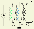 (3) Bij een dipoolantenne met een voedingspunt (50 ?) van lage impedantie, gebruikt men het beste een 1 : 1 balun met drie draden (3 spoelen). Zo'n (fig») systeem heeft de beste symmetrie want de belasting (antenne) is (theoretisch) ook symmetrisch.
