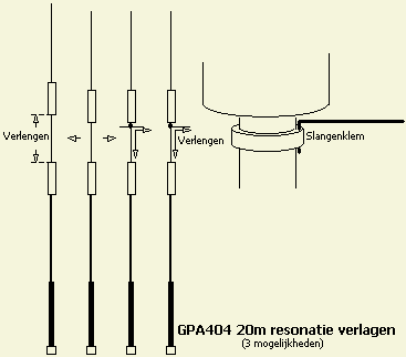 GPA404 resonantie. Een brandende kwestie. Ik heb een GPA404 met draden als radialen en mijn SWR 1 ÷ 2 op 14.300 MHz is goed te noemen. Alleen ik mag maar tot 14.250 MHz komen en daar word het al snel slechter. Mijn vraag, moet ik de 20 m radiaal langer of korter maken om hem onder in de band beter te krijgen. Volgens mij moet hij langer worden of niet?