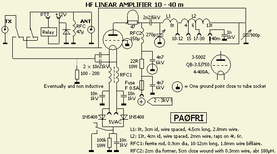 Schema voor 4CX250. Ik heb een geschikte HV transformator en twee splinternieuwe buizen 4CX250 liggen. Zij waren eigenlijk bestemd voor een VHF versterker maar het is er nooit van gekomen. Heb je een ontwerp om met deze spullen een HF lineair te maken?