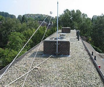 Na het plaatsen van een W 8010 op het dak, kreeg ik veel commentaar van de buren: of onze huizen een schip moesten voorstellen tot een lokaal zenderpark. Daarna heb ik de antenne verlaagd en door het inspuiten met aluminium zilver spray van antennemast en de zwarte draden het profiel minder zichtbaar gemaakt. Er bleef één ernstig klagende buurman over, die zelfs zover gaat dat volgens hem de huizen in waarde verminderd zijn. Daarom wil ik het geheel nog minder opvallend maken. De van 4 m naar 2.5 m boven het dak verlaagde antenne werkt fantastisch, dus daar is gelukkig niets mis mee. Maar...... heb je voor mij een uitvoerbaar advies om alles minder opvallend of "onzichtbaar te maken?