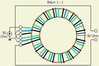 Misschien kun je me helpen met het probleem dat ik heb met het begrijpen van een 1 : 1 balun aan de ingang van een antennetuner. In jouw artikel over baluns beschrijf je, hoe een kern op een speciale manier gewikkeld werd met twee spoelen van een gelijk aantal windingen.