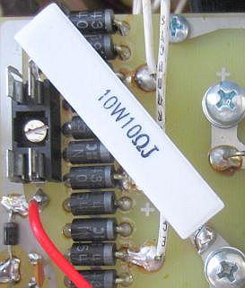 Mount a 10 Ohm/10 W wire-wound resistor, and remove ferrite bead L7 (RFC at L4) at the bottom of the PCB. The wire-wound resistor also acts as a replacement for inductor L7.