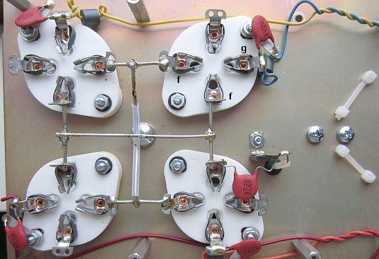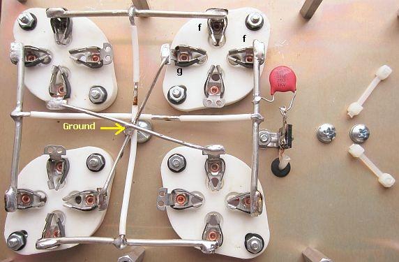 Tube sockets rotated 180 °, grid capacitors, resistors and ferrite beads removed.