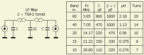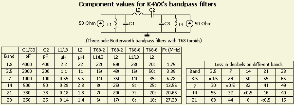 In "Band-pass filters for HF transceivers", QST 1988-09, K4VX provides details of these three-pole Butterworth band-pass filters for cleaning-up the harmonic output of any low- or medium-power transmitter. It also provides filtering in the receiver mode, helping to reduce front-end overload problems and limit the number of strong broadcast signals entering the receiver.