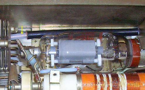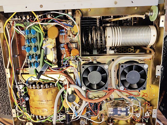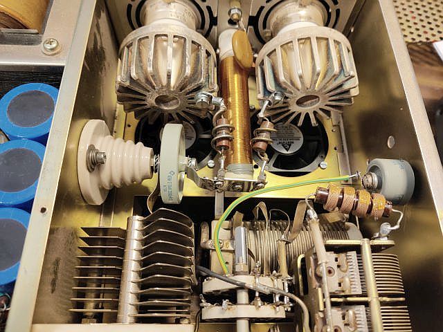 The air pressure of the two fans is minimal and creates an airflow that is hardly noticeable. During long transmission period's e.g. during a contest, slow scan TV, RTTY etc. the area with the tubes gets pretty hot. Often this results in damage to the doorknob capacitors that will crack or short through overheating.