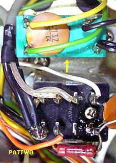 The thin hook-up wire and long connections to the relays in the input circuit creates problems, especially at the higher HF bands. A 27 pF capacitor across the relays contacts (sometimes even across the input connector) creates a broadband tuning of the cabling in the 10 – 15m frequencies. Using a trimmer can improve results even more. Wiring using coax cable can help but often the capacitor is required due to the cabling around the relays.