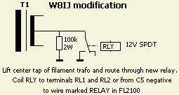 With tubes that have a higher µ that the original 572B the negative bias to "close the tube" may be too low. If the amplifier is not loaded properly this may result in self-oscillation of the amplifier. W8IJ uses a 100 K resistor to the centre of the filament winding to prevent this. A relay shorts this resistor to earth when transmitting. PA7TWO has applied this modification with success.