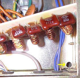 The pictures show the short way to implement these changes. Drill a hole in the socket compartment and possibly mount a grommet. Subsequently use some 6 mm² wire (or RG213 etc.) from the bottom of VC1 to one valve socket. Insert some protection against the wire touching the chassis or ensure that the wire does not touch the chassis anywhere else.