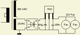 To sufficiently cool the tubes, three other fans were mounted. The third at the back through an additional opening.