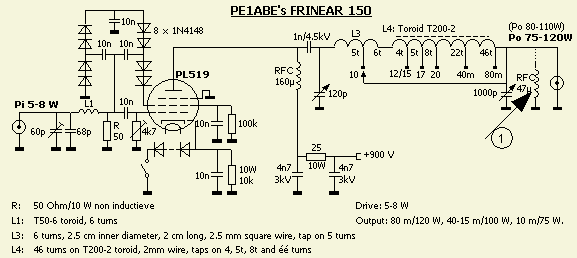 PL519 FRINEAR 150, 150 W (QRP) Versterker
