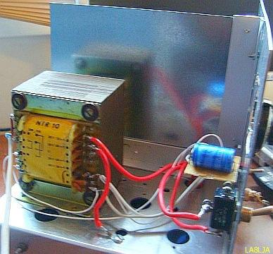 Een geschikte anodespanning is 800 tot 1300 V. Mijn "HV–1300" elders op deze site is vrij universeel. Een kleinere ~230/230 V scheidingstransformator is zeer geschikt en de capaciteit van de condensatoren kan verlaagd worden naar bij voorbeeld 220 uF/400 V.