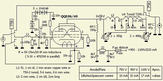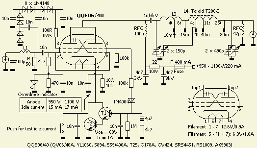 Omdat CW niet meer een exameneis is, verkassen veel voormalige UHF/VHF amateurs naar de HF banden. Het gevolg is dat hun 2 meter etc. spullen nogal eens te koop aangeboden worden. Zo ook de bekende dubbeltetrode QQE06/40 of de varianten QQV06/40A, 5894, 559/400A, T25, AX9903, C178A, CV424, CV2797, RS1009, SRS4451 en YL1060. De vraagprijs is regelmatig lager dan dat van een EL/PL519, zodat het aantrekkelijk wordt om aan zo'n dubbelbuis te denken. Hij is klein, mag horizontaal gemonteerd worden en men kan kiezen voor een gloeispanning van 6.3 en 12.6 Volt. Zij zijn sterk, kunnen tegen een kortstondige overbelasting en ondanks de specificaties kan er ook, net als bij een EL/PL519, 1100 V op de anode gezet worden.