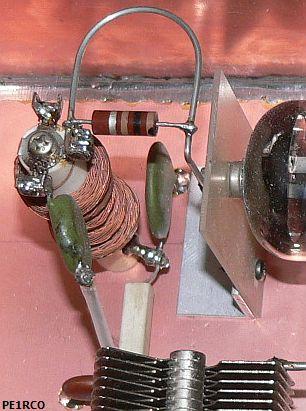 Opgelet: Er is echter iets dat niet aan te bevelen is. Bij punt (1) hoort een smoorspoel gemonteerd te worden van de uitgang naar massa. Dat is een veiligheidseis van de overheid. De RFC is er om te voorkomen dat hoogspanning op de antenne uitgang komt als de anode koppelcondensator (1 n/4,5 kV) zou doorslaan. Het is wel de bedoeling dat deze kortsluiting een zekering in de anodelijn laat doorpiepen!