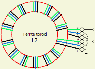 L2 maken met een ringkern of ferrietstaaf van een AM radio gaat het ook, maar het is dan beter om een trifilaire spoel te maken en de drie spoelen in serie te schakelen.