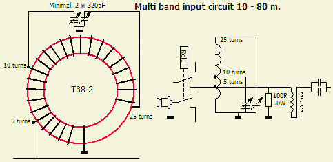 Als het door de toegepaste bouwwijze niet mogelijk is om een goede SWR te krijgen tussen zender en versterker, dan kan een extra tuner met één knop toegevoegd worden. Deze bestaat uit een T 68-2 ringkern (of groter formaat) en een tweevoudige variabele lucht condensator van minimaal 2 × 320 pF. De ongeveer 100 pF trimmer in het hoofdschema kan dan vervallen.