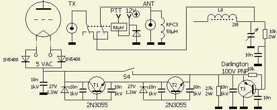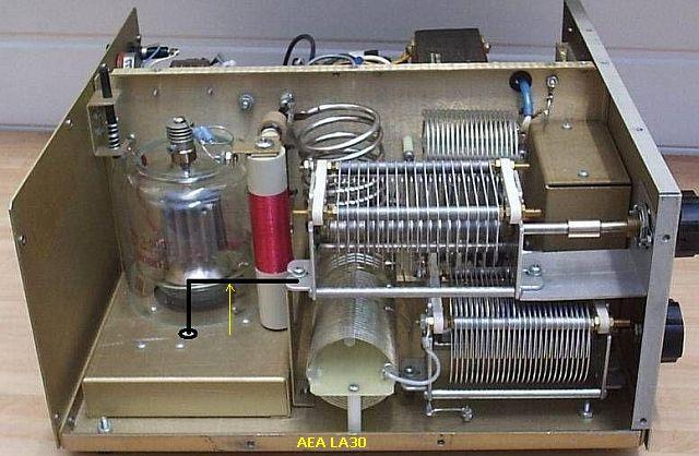 In fact the tube is placed in a screened box that detours the current from the stator plates to the tube socket. An extra short thick wire shortens the path, improves overall stability and efficiency on the higher frequencies.
