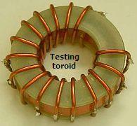 A part (L8) of the 160 m coil (L6 + L7 + L8) is wound on an Amidon T200-2 toroid core. This was done in order to limit the overall dimensions of the amplifier. A toroid, self-shielding because of its low external field, facilitates compact construction. Before winding, several layers of Teflon plumbing tape must be applied to the core, to insulate it from the coil-windings. Another method («fig) of insulation is to cement two flat isolating washers (e.g. made from bare glass fibre board) on each side of the bare core. Apply a small quantity of super glue, possibly only a few drops, around the sides of the core. Work swiftly; the glue hardens quickly. The glue prevents the washers from moving out of alignment while the core is being prepared for winding. For a T200-2 core, the inner diameter should be 28 mm diameter and the outer diameter 55 mm. With this last construction it might be even possible to use bare copper wire for the 28 turns winding of 14–19 SWG enamelled wire.
