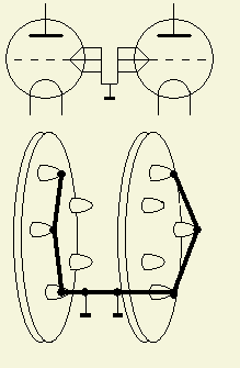Veel buisvoeten hebben meer dan één aansluiting voor een rooster. Vaak ziet men dat dan alle betreffende buisvoet pinnen direct geaard worden aan het chassis of massa. HF stroom zoekt de kortste weg en ik ben van mening dat die stroom zich hoofdzakelijk verplaatst via één buispin. Daarom worden door mij alle pinnen van een buisvoet met elkaar verbonden en van slechtst van één pin gaat een dikke of brede geleider naar het chassis. Een bevriende zendamateur had een onstabiele versterker met 2 × 3-500Z. De drie roosteraansluitingen werden ieder apart via een weerstand met parallelcondensator aan het chassis gelegd. De buizen oscilleerden regelmatig en ook vond er een kortsluiting plaats tussen het rooster en gloeidraad. Toen bij beide buizen de voorgestelde "één punt aarden" aangebracht werd, was het verschijnsel verholpen en de versterker werkt nu al jaren probleemloos. Hierboven ziet u één van de mogelijkheden (in een TL-922A) om een dergelijke montage te realiseren.