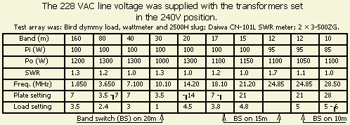 Het maximale zendvermogen dat in vele gebruikers handleidingen geclaimd wordt, kan in ons land niet gehaald worden. Dat komt omdat de gegevens gebaseerd zijn op netspanningen van ~120 V of ~240 V in de VS. In dat land komen lokaal soms nog hogere netspanningen voor. De anodespanning, vaak verkregen door spanningsverdubbeling, wordt dienovereenkomstig lager bij de lichtnetspanning in Nederland. Bij mij thuis, direct gemeten op het stopcontact, valt de netspanning terug naar ongeveer ~221 V als ik een versterker volledig uitstuur. Als u een lineair wilt kopen houdt er dan rekening mee dat er minder uit komt dan voorgeschoteld wordt.