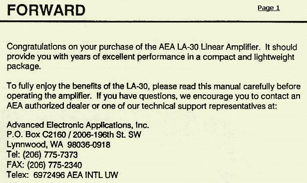 AEA LA-30 HF AMPLIFIER (VECTRONICS HF-600, VIEWSTAR PT-1000)