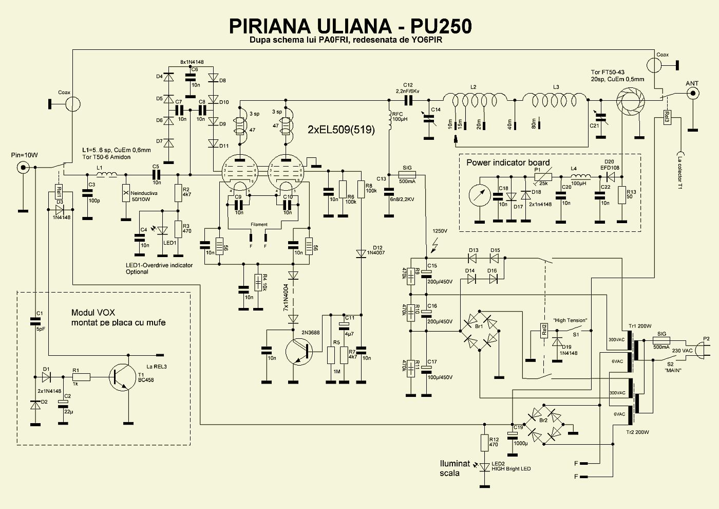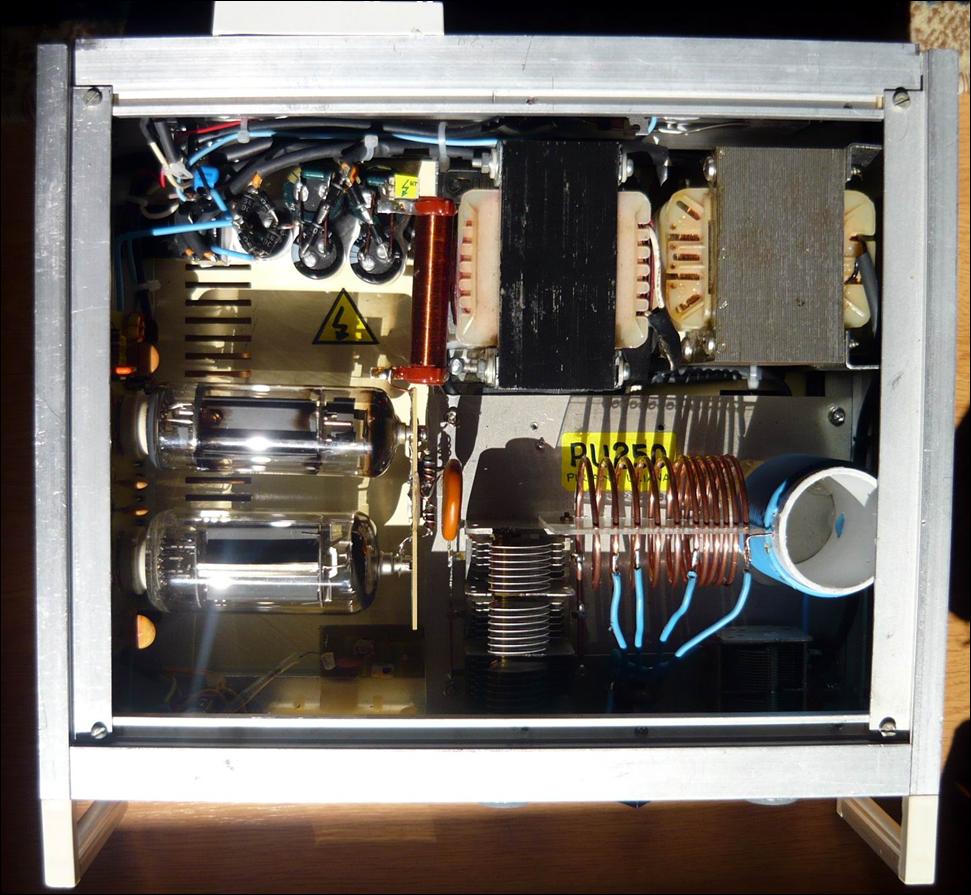 De voeding van de lineair was een uitdaging voor mij. Ik heb twee transformatoren van Zetagi 131 versterkers gebruikt, beide met secundaire wikkelingen van 6.3 V en 300 V.