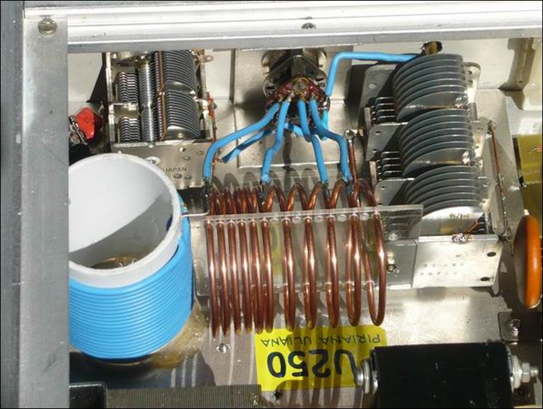 De koppellus voor het SWR systeem naar de antenne bestaat uit een FT50 ringkern (ferriet-43) en is zo dicht mogelijk bij het uitgangsysteem gemonteerd.