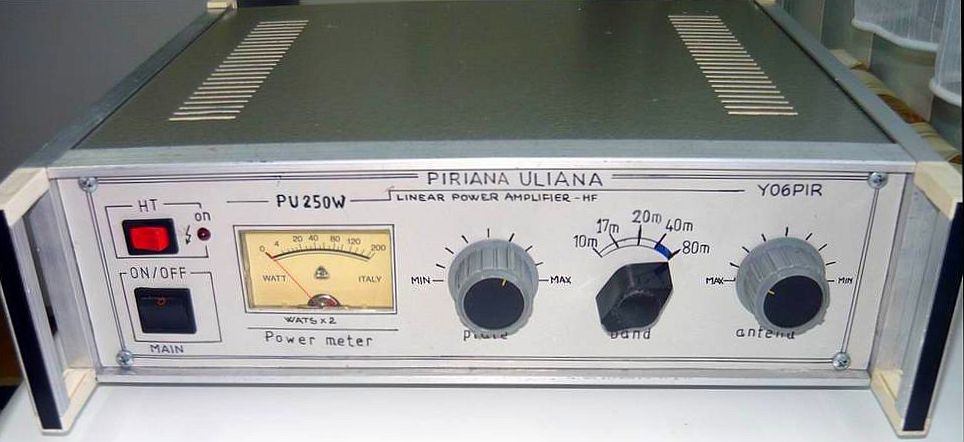 Deze lineaire versterker bouwde ik op advies en met de hulp van een vriend, radiozendamateur YO6PMX (Marcel). Hij is ook de naamgever van het apparaat. De basis van het schema heb ik van PA0FRI's website gehaald, zie Frinear150 . De sturing gaat op het eerste rooster van een passief roosterversterker met twee EL509 buizen. In deze configuratie levert de versterker een nominaal vermogen van 250 W in een 50 Ohm dummyload. Het een en ander is gedaan met een SK-M2120A van Sommerkamp met een output van 10-20W.
