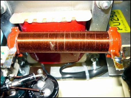 Voor de anode smoorspoel gebruikte ik het lichaam van een grote draadgewonden weestand, dat over de gehele lengte voorzien werd van aaneengesloten windingen 0.3 mm draad. Het resultaat was een zelfinductie van 93.5 µH. Dat is een behoorlijke waarde voor deze toepassing.