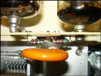 De anode stoppers (suppressors) werden op de klassieke wijze gemaakt met koperzilverdraad (CuAg) van een bobine of trafo. Drie windingen van 0.5 mm draad over een 56 Ohm weerstand.