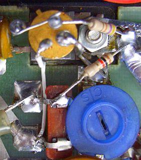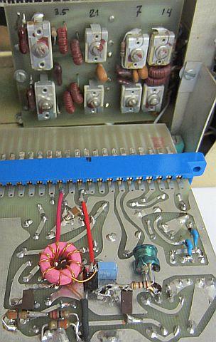 Hier werd veel verbetering in stabiliteit bereikt door de draad naar de trimmer aan beide kanten opnieuw te solderen. Verder werd dat ook gedaan met alle lipjes van de schakelaardekken in de VFO ruimte en aan het dek tegen aan buitenkant.