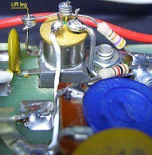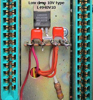 De basis van de regeltransistor Q506 (2N5490) moet los gesoldeerd worden van het printspoor. Buig het pootje naar boven. Het printspoor wordt nu massa gemaakt door dat met een draad aan een massapunt te verbinden. Soldeer de aansluiting van de twee diodes (D501 & D502) los en verwijder een eventuele 100 Ω weerstand van het printspoor. In mijn originele schema ontbreekt deze weerstand maar hij was wel op de print gemonteerd parallel aan de in serie geschakelde diodes D501 en D502. De aansluiting wordt daarna aan de andere poot van de potmeter gesoldeerd. De extra PNP transistor (2N2905 of een ander universeel type) werd omgekeerd op Q506 gemonteerd. Om beide halfgeleiders op gelijke temperauur te houden heb ik voor de zekerheid koelpasta aangebracht. Door montage aan de andere componenten wordt de transistor op zijn plaats gehouden.