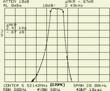 Het IF kristalfilter is een zeer goed 8 polig laddertype. DJ9PK heeft uit een gesloopte Atlas de bandbreedte van het filter (Fa. W. van Buuren Phoenix, Arizona) gemeten. Zijn bevindingen stemmen grotendeels overeen met de grafiek van het filter zoals dat in de "INSTALLATION OPERATION AND MAINTENANCE" handleiding staat afgedrukt. Een snelle meting met mijn spectrumanalysator, waarbij het filter aan de in en uitgang belast werd met 1 kΩ, leverde ongeveer hetzelfde plaatje op als dat van de Duitser.