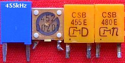 In de oscillator schakeling wordt een 455 kHz keramische resonator toegepast. Helaas piepen zij zelden op of rond de aangegeven frequentie. Experimenteren is vaak geboden, want het komt zelfs voor bij exemplaren en types van hetzelfde merk. Gekozen is voor (fig») een Murata CSB455E, omdat dit model wat meer in omloop is.