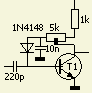 Het dubbel zijband signaal uit de eerste NE612A (pin 4, 5) is te zwak om begrensd te worden met silicium of Schottky diodes zonder voorspanning. Daarom ontstond al experimenterend een (fig») stroom trekkende clipper schakeling met één diode en de basis-emitter overgang van een transistor (T1) als tweede diode. De weerstanden 1k8 en 3k9 zijn er voor een zo goed mogelijke symmetrische begrenzing.