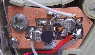 Op de 80980 print onderbreekt u de draad van connector 74 naar T1 en daarna verbindt u de collector van de tweede transistor met de connector. Bij mij werden alle extra componenten zwevend en zelfdragend rondom T1 gemonteerd.