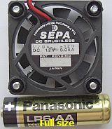 I had in my stock a small 40 × 40 × 10 mm fan that fits on the inner side of the cage just between the left orange electrolytic capacitor and the right ferrite choke. So even for the security it was installed.
