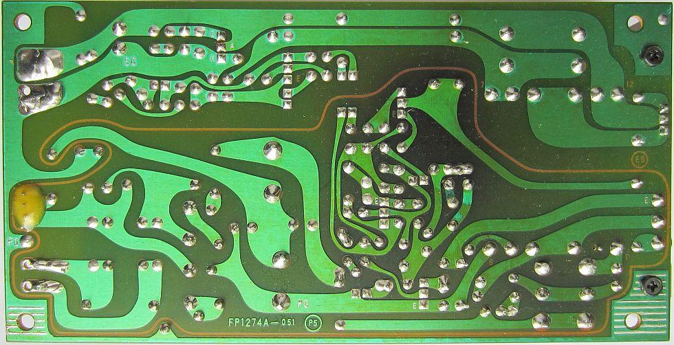 Blackened area at the track side because two 33 Ohm resistors can not get rid of their heat also because the PSU is still connected to the mains when the FT-736 is switched-off.