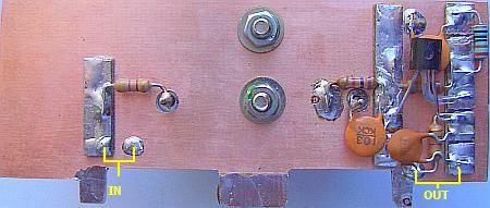 Als buffer (fig») had ik een P8002 gemonteerd, maar dat type is vrijwel niet meer te koop. Omdat de transistor in de schakeling met een vrij lage spanning werkt, bleek dat met een stroom van ongeveer 15 mA de in en uitgang vrijwel 50 Ω waren. Die stroom is ook niet veel voor een J310 type en daarom zal deze transistor het ook wel goed doen in de schakeling. Weerstand R moet ingesteld worden op een drainstroom van ongeveer 15 mA.